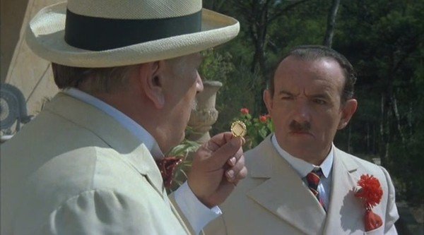 当波洛在检查宾馆登记的旅客名单时,他看到的很多名字都是20世纪30年代当时的国际名人,包括Cole Porter, Ivor Novello, Maurice Chevalier, Fred 和 Adele Astaire, Charlie Chaplin,还有很难辨认出开头大写字母M和D的Marlene Dietrich 玛琳·黛德丽(登记的她的地址是柏林)。虽然只有一两秒的镜头,这份名单更像是电影制作者偷偷开了一个玩笑。