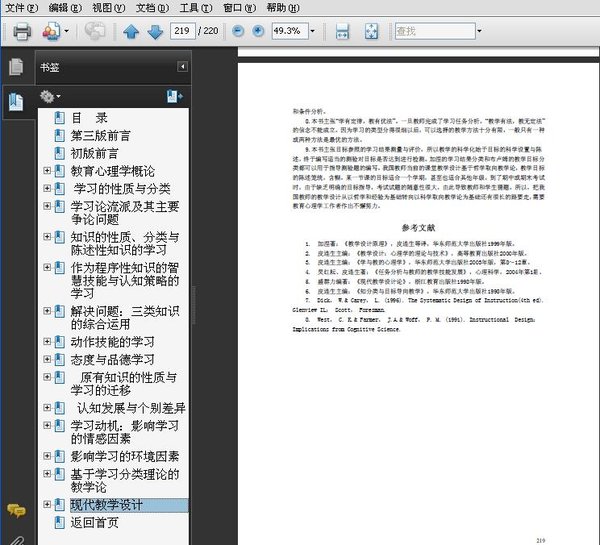 : 第一章 心理学与教育的结合 第二章 学习的性质与分类 第三章 学习论流派及其主要争论问题 第四章 知识的性质、分类与陈述性知识的学习 第五章 作为程序性知识的智慧技能与认知策略的学习 第六章 解决问题:三类知识的综合运用 第七章 动作技能的学习 第八章 态度与品德学习 第九章 原有知识的性质与学习的迁移 第十章 认知发展与个别差异 第十一章 学习动机:影响学习的情感因素 第十二章 教育环境 第十三章 基于学习分类理论的教学论 第十五章 现代教学设计