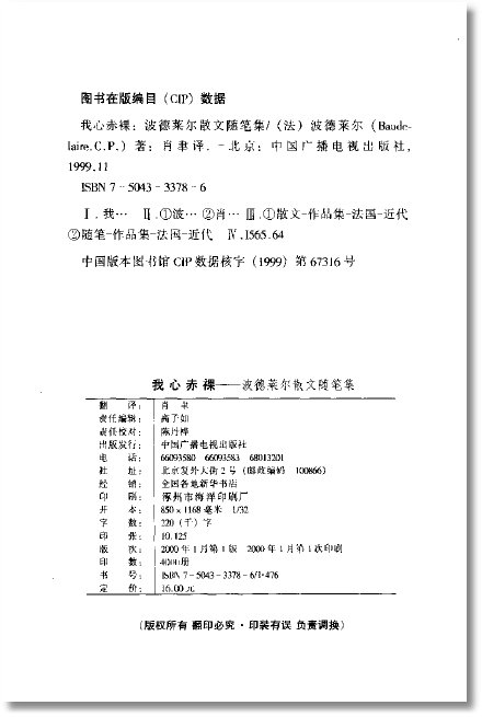 中文名: 我心赤裸-波德莱尔散文随笔集