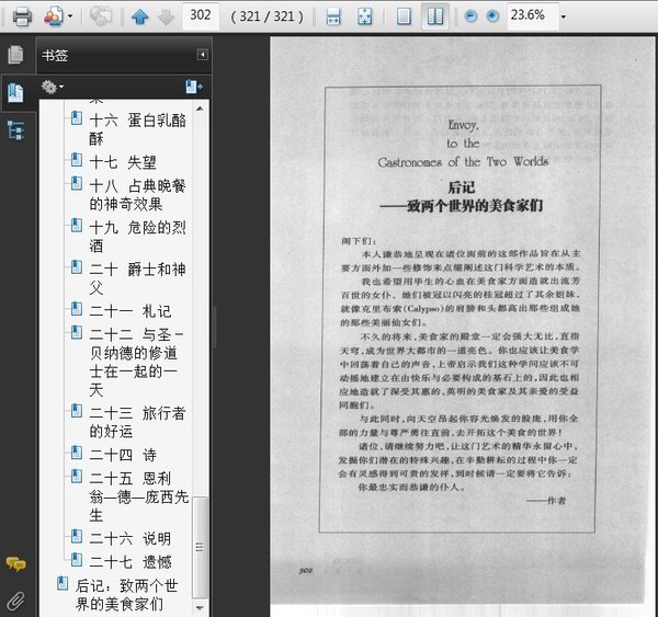 “动物吃食,人吃饭,唯独有格调的人才知道去品味。”本书是西方美食文学的经典之作。作者布里亚·萨瓦兰(法)从人的五种感觉开始畅谈美食艺术,古往今来,人生百味,体现了法国人的乐观和浪漫,也给了读者很多启示。法国著名符号学家罗兰巴特也对萨瓦兰情有独钟,专门写了《明室》等篇章分析本书。早在上世纪二三十年代,钱钟书、徐志摩、林徽因等都提到过作者及本书。这本机智、幽默的书超越了一般谈美食的书而真正具备了“文化”的意义,成为饮食文化名著里最有名的名著。