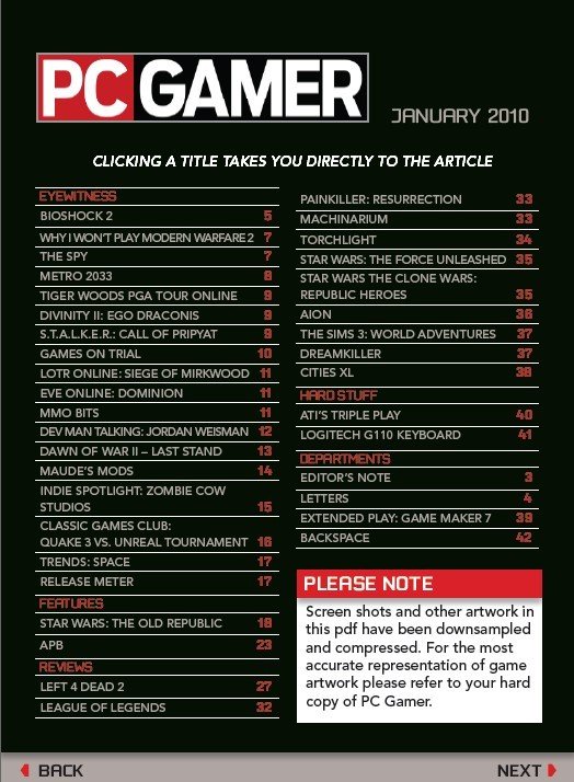 PC Gamer杂志是一本来自英国的电脑游戏月刊。该杂志拥有英国和美国等等几个地区的版本,成为各自国家最畅销的电脑游戏杂志。该杂志的介绍视频游戏产业发展的相关新闻,新游戏试玩,以及最新流行的电脑游戏评论,以及有关硬件的其他功能,还有“经典”游戏及其他各种讨论。