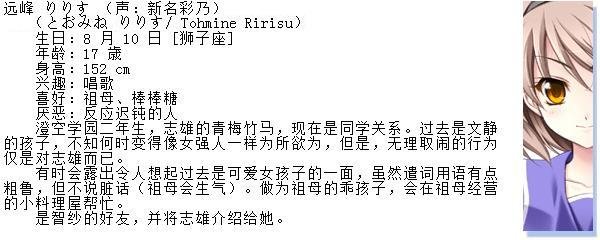 知名恋爱游戏制作公司 5pb. 日前公开《秋之回忆》系列最新作《秋之回忆 6 ~T-wave~》的官方网站及相关资料,这次故事的舞台与初代《秋之回忆》一样,在澄空学园高校展开,而本作标题中T-wave的T为 triangle(三角)的缩写。  《秋之回忆6:三角波动》的故事发生在前作《秋之回忆5:间断的电影》的一年之后,而发生的地点则与系列第一作相同。另外还有一点与前作相同,那就是当达成两个女主角的Good End之后就可以进入一个新的路线,以女主角的视角来观察后夜祭之前的故事。  本作为2008年8月28日发售推出的PS2版移植作品,游戏中玩家将化身为主角“冢本志雄”,并周旋在五名女孩之间寻找自己的恋爱体验。而在游戏系统 方面则将跟之前一样让玩家可以透过选择项目的不同来进行故事分歧,而且在PSP版中还特别对应16:9的宽萤幕画面显示,让玩家能够更加融入到故事之内。   至于在本作故事方面,六代以“无可替代的宝贵思念”为主题,描述由于莉莉丝祖母的要求,主角冢本志雄必须来叫醒跟自己从小一起长大的青梅竹马的远峰莉莉 丝起床一起上课。虽然小时候很可爱,总是跟在自己的身后跑来跑去,但自从因为双亲的缘故搬走之后,如今再度回来的莉莉丝,却变成了一个目中无人的任性少 女……。对于一直照顾自己的志雄,莉莉丝也只是一边抱怨一边把自己当成是仆人一号一样地来对待……。而在上课的途中,莉莉丝好像想起了什么似的开始抱起了 头。其实,莉莉丝接受了好友箱崎智纱的恋爱顾问要求,而智纱看中的对象,就是志雄。虽然志雄目前应该并没有女朋友,而智纱也对志雄有著好感,但莉莉丝却还 是难以把这件事情给说出口。但是在看到智纱大胆地改变自己的形象,并满脸通红地向志雄提出“在这次的后夜祭里……要不要跟我一起跳舞呢?”这样在私立澄空 学园高等学校中等同告白的邀请之后,在迷惑的志雄、脸上显著复杂表情的莉莉丝与大胆告白的智纱三人之间,开始吹起了一阵不一样的秋天的风……。 主人公冢本志雄是私立澄空学园的高中二年级学生。他被前青梅竹马的远峰りりす当成仆人一样使唤,也没有女朋友。一天,りりす将隔壁班上的箱崎智纱介绍给志雄。智纱邀请他在后夜祭一起跳舞。因为这在澄空学院被视为和告白一样的举动,志雄感到不知如何是好。