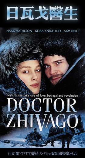 ◆原  名:Doctor Zhivago ◆译  名:日瓦戈医生 ◆演  员:汉斯·马特森(Hans Matheson)饰日瓦戈医生       凯拉·奈特莉(Keira Knightley)饰拉瑞娜       亚莉珊德拉·玛蕊亚·拉瑞(Alexandra Maria Lara)饰塔妮亚       山姆·尼尔(Sam Neill)饰寇马       丹尼·罗提(Daniele Liotti)饰米夏       克瑞斯·马歇尔(Kris Marshall)饰巴夏 ◆类  型:剧情 ◆片  长:上下集,共约四小时 ◆首 播:英国2002年11月24日 ◆国  家:英国独立电视台 ◆语  言:英语 ◆字  幕:YDY-YTET字幕组 ◆简  介: 故事的背景是1901年,沙皇时代后期。尤瑞·日瓦戈 (Yury Zhivago)的父亲因为遭受事业伙伴陷害自杀身亡,所以尤瑞由舅父尼古拉 (Kolya) 扶养长大。尤瑞在莫斯科受过良好的高等教育,在医学院研究细菌学,同时也是一名诗人。 艾玛莉亚 (Amalia Karlovna Guishar),一个俄裔法国寡妇,带着她的两个孩子Rodyon和拉瑞 (Larissa)来到莫斯科。借由丈夫所留下的财产与一个叫寇马(Komarovsky)的律师的建议,艾玛莉亚买下了一间制衣工厂。拉瑞已经16岁,并长成一个幽雅和漂亮的女孩。她注意到寇马常用奇怪的眼光注视着她;当拉瑞的母亲生病时,寇马常带她去高级餐厅用餐和跳舞。最终他们发生了性关系,拉瑞感到羞耻和困惑,并尝试拒见寇马,但他仍然纠缠着她。 艾玛莉亚知道他们之间的关系后,尝试服碘自尽。当地的医生被召来,尤瑞也是其中一名实习医师。1905年12月,莫斯科的Krasnaya Presnia发生暴动(起义),拉瑞的青梅竹马巴夏(Pasha)也加入了抗议民众。警察和正规军人残酷的镇压了抗议民众。一阵混乱中,拉瑞及时制止了巴夏,夺走他的手枪,以防他被杀。 尤瑞和塔妮亚在一场圣诞节舞会中迟到了。在大约凌晨两点左右,尤瑞和其他宾客听到一声枪响,尤瑞看了那个开枪的女人,发现是那个不久前在病患家中所看到的同一个女孩。尤瑞接到家中消息,要他赶回去。当尤瑞和塔妮亚抵达时,安娜(塔妮亚的母亲)已经死了。尤瑞和塔妮亚在不久后结婚,并育有一子沙夏 (Sasha)。 与此同时,拉瑞和巴夏(Pasha)决定结婚,拉瑞希望离寇马越远越好,他们在拉瑞在乌拉山的出生地尤瑞亚丁 (Yuryatin)申请到了小学教师的工作。她与巴夏有一个女儿卡雅 (Katya)。巴夏后来得知拉瑞与寇马之间的关系,以为拉瑞并不爱他,一气之下便去从军打仗,不久传来巴夏失踪的消息,拉瑞于是跑上前线当护士寻夫。 时为第一次世界大战,尤瑞在前线成为一名军医。一日在战场上被炮弹炸昏,醒来时看见了一位美女护士-拉瑞 (Lara),一个他之前遇过两次的女人。第一次是在一个尝试自杀的女人的房子中,他看见这个女人的女儿-拉瑞,和一个较年长的男人-寇马(Komarovsky)交换眼神。第二次是在一次圣诞节舞会中,拉瑞试图拿枪刺杀寇马,但却误击旁人。尤瑞因伤被拉瑞所照顾,战争期间他们一起在军医院工作,并逐渐产生情愫,但战争结束后尤瑞便回到莫斯科的妻子和儿子身边; 1917年,十月革命后,莫斯科起了很大的变化;他们原先的大房子已被征用,住了六个家庭。尤瑞由于是知识份子,因此被当局所敌视,朋友劝他离开莫斯科。由于莫斯科食物短缺,尤瑞决定前往瓦基诺 (Varyniko),那里有栋塔妮亚的祖父留下的房子。途中他遇到化名史卓林卡夫 (Strelnikov) 的巴夏,原来他只是被俘,后来逃出来,他现在是乌拉山的红军领袖,并用残酷的手段对付提供白军补给的平民。尤瑞由于健康问题 (家族遗传的心脏病) 到邻近小镇尤瑞亚丁 (Yuryatin) 上的图书馆查书,在那里与拉瑞再度相逢,从此跟她有一段浪漫的爱情。两个月后,尤瑞决定结束这场外遇,并打算将所有实情告诉妻子。在回家的路上,尤瑞却不幸被红军游击队俘虏。 当时俄国的白军和红军展开无休止的战争,迫使百姓抛弃家园,流离失所。尤瑞被强迫在游击队中担任军医直到内战结束。在担任军医的两年中,尤瑞见到了人性最丑恶的一面;无辜的平民在红白两军的战火下被无情的蹂躏。被释放后,尤瑞回到尤瑞亚丁 (Yuryatin) 去找拉瑞。他们在一起生活了数个月,一天尤瑞收到妻子的来信,说她生了一个女儿,她不晓得尤瑞到底是死是活,由于她父亲曾是地主,当局将要把她们全家驱逐出境。此时寇马又来纠缠拉瑞,于是他们跑到瓦雷金诺躲藏,在那里他们渡过了短暂但快乐的冬天。不久寇马又找上门来,这次他跟尤瑞说拉瑞的前夫由于不是血统纯正的布尔什维克,因此已被通缉,拉瑞和她的女儿都处于危险的情况下;并劝说他们逃往远东以避免被杀。尤瑞为了她们母女的安全,假装答应她们会在稍后会合,并让寇马带走她们母女,而他自己则留在瓦雷金诺。一晚,一个陌生人到了尤瑞的房子,原来是巴夏,他问拉瑞在那里。尤瑞回说她们已永远不会再回来了。巴夏和尤瑞聊了许多这段时间发生的事情。尤瑞说拉瑞其实仍然一直深爱着他。巴夏说他加入红军为的就是要清算像寇马这样的败类。尤瑞去睡后当晚,巴夏便举枪自尽。 1922年,尤瑞回到莫斯科找工作,他尝试取得签证到巴黎与塔妮亚会合,但是失败。虽然不到40岁,尤瑞的心脏病已越来越严重。他开始和他家人朋友的女儿玛丽亚 (Marina)生活,并有两个小孩。尤瑞的老朋友米夏 (Misha)和尼奇 (Nicky) 希望他能放下对塔妮亚的感情,并专注在对玛丽亚的关系上。不久尤瑞在莫斯科的医院找到新工作,却在上班第一天的路上死于因心脏病发。拉瑞在尤瑞的葬礼上出现,她从伊尔库茨克 (Irkutsk,贝加尔湖南部)回到莫斯