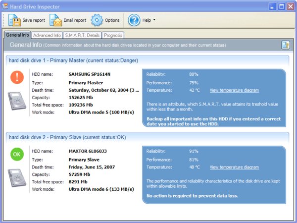 a disk's reliability and performance. Hard Drive Inspector