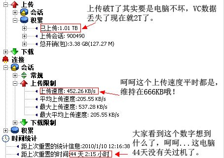 使用10M光纤做源,7*24小时不间断做源,但是不排除偶尔服务器需要重启,我会第一时间恢复供源。2009.12.23重新装了系统。^^ 截止2010.01.01^^2010.1.27截图发出^^2010.1.28-2010.2.23上传突破1T。