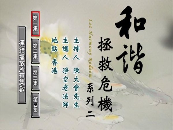 大型系列公益节目——曾在中央电视台《东方之子》、《经济半小时》、《对话》等栏目担任主持人的陈大惠,于2008年10月31日至11月2日主持并制作的对净空老法师的访谈。 9月5日:增加光盘镜像