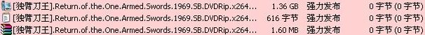 完整名称 : G:\1\邵氏\独臂刀王(字幕完)\[独臂刀王].Return.of.the.One.Armed.Swords.1969.SB.DVDRip.x264.2Audio.AC3.iNT-NowYS.mkv