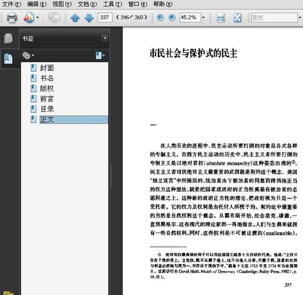 : 辑一 总论 传统,理性,与相对主义 ——兼论我们当前该如何从事中国哲学 现代化与中国当前的哲学课题 从理性到历史 ——黑格尔论中国 社群与个体 ——社群主义与自由主义的论辩 辑二 伦理与教育 二种道德观 ——试论儒家伦理的形态 韦伯的比较宗教学:新教、儒教与资本主义 现代社会中价值教育为什么会式微? 辑三 社会与经济 市民社会与重本抑末 ——中国现代化道路上的一些障碍 市民社会与现代性 洛克的产权理论 辑四 政治 民族与民族自决 民族国家与文化多元主义 ——现代政治的一个困局 自由与社会统一:德沃金论社群 《明夷待访录》所揭示的政治理念 ——儒家与民主 市民社会与保护式的民主