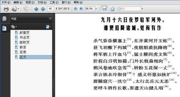 : 诗选 送仲高兄宫学秩满赴行在 和陈鲁山十诗以盂夏草木长绕层树扶疏为韵 夜读兵书 霁夜观月 泛瑞安江风涛贴然 度浮桥至南台 海中醉题,时雷雨初霁,天水相接也 东阳观酴醾 闻武均州报已复西京 送七兄赴扬州帅幕 夏夜泛舟书所见 送查元章赴夔漕 晚泊慈姥矶下 上已临川道中 游山西村 十月苦蝇 闻雨 送张叔潜编修造朝 送芮国器司业 宿枫桥 黄州 哀郢 重阳 瞿唐行 记梦 风雨中望峡口诸山奇甚戏作短歌 晚晴闻角有感 岳池农家 山南行 南郑马上作 次韵子长题吴太尉云山亭 太息 游锦屏山谒少陵祠堂 归次汉中境上 剑门道中遇微雨 三月十七日夜醉中作 登荔枝楼 夜读岑嘉州诗集 八月二十二日嘉州大阅 九月十六日夜梦驻军河外,遣使招隆诸城,觉而有作