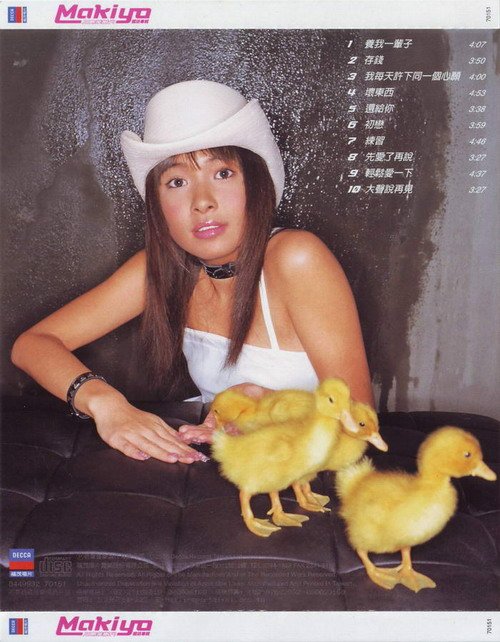 眼下,各大唱片公司都大打"少女牌",而且年纪一个比一个小,唱功一个比一个好。(实在让我等男生倍感压力)当年成功捧红了"小魔女"范晓萱的台湾唱片界"新人教父"李亚明最近又掘到一块宝,她就是年仅16岁的中日混血儿----川岛茉树代Makiyo(天哪,未成年儿童!不知道福茂唱片算不算雇佣童工?!)。