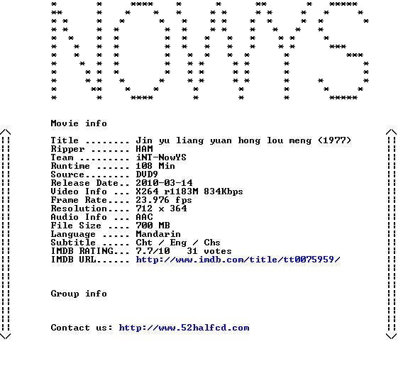 完整名称 : G:\1\[金玉良缘红楼梦].The.Dream.Of.The.Red.Chamber.1977.SB.DVDRip.X264.AAC.iNT-NowYS.mkv