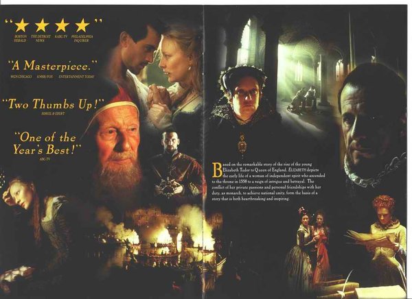 编导成功地将1554年伊莉莎白登基前后的整个复杂情势鲜明道出。看本片让人无法不联想到《莎翁情史》,还因为两片的男主角都是约瑟夫·法因斯和杰弗瑞·拉什(女主角帕尔特罗竞争本片主角,但未成功)。如果你对英国历史(尤其是宫廷史)感兴趣,本片是绝佳的教材。跟年代相同的《莎翁情史》相比,本片缺乏跨越不同文化的穿透力。一个印度导演能把英国几百年前的故事讲得这么精彩,可见有些成见需要破除。