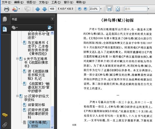 : 1 中国古典学重建中应该注意的问题 2 新出土先秦文献与古史传说 新出土先秦文献与古史传说 口公盨铭文考释 3 中国出土简帛古籍在文献学上的重要意义 4 出土古文献与其他出土文字资料在古籍校读方面的重要作用 考古发现的秦汉文字资料对于校读古籍的重要性 谈谈地下材料在先秦秦汉古籍整理工作中的作用 阅读古籍要重视考古资料 简帛古籍的用字方法是校读传世先秦秦汉古籍的重要根据 谈谈清末学者利用金文校勘《尚书》的一个重要发现 5 关于郭店简中的道家著作 郭店《老子》简初探 纠正我在郭店《老子》简释读中的一个错误——关于“绝伪存诈” 《太一生水》“名字”章解释——兼论《太一生水》的分章问题 6 郭店简儒家著作校读举例 由郭店简《性自命出》的“室性者故也”说到《孟子》的 “天下之言性也”章 读《郭店楚墓竹简》札记三则 释郭店《缁衣》“出言有1,黎民所言1” ——兼说“ 1”为“针”之初文 7 关于上博简的一些问题 关于《孔子诗论》 谈谈上博简和郭店简中的错别字 谈谈上博简《子羔》篇的简序 8 关于马王堆帛书《老子》卷前后古佚书 马王堆《老子》甲乙本卷前后佚书与“道法家”——兼论《心术上》《白心》为慎到田骈学派作品 马王堆帛书《老子》乙本卷前古佚书并非《黄帝四经》 9 关于马王堆帛书《战国纵横家书》 读《战国纵横家书释文注释》札记 《战国策》“触詟说赵太后”章中的错字 10 汉简中的俗文学资料 田章简补释 汉简中所见韩朋故事的新资料 《神乌傅(赋)》初探