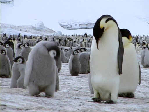 (转自百度百科)   皇帝企鹅(英译Emperor Penguin),简称帝企鹅,属于企鹅目,企鹅科,是现存企鹅家族中个体最大的。一般身高在90厘米以上,最大可达到120厘米。体重可达50公斤。在南极以及周围岛屿,都有分布。   帝企鹅身披黑白分明的大礼服,喙赤橙色,脖子底下有一片橙黄色羽毛,向下逐渐变淡,耳朵后部最深,全身色泽协调。在南极冰川,成群的帝企鹅聚集在一起,热闹非凡,而又秩序井然。金色的太阳将南极大陆照耀得辉煌壮丽,千万只帝企鹅穿着全黑的燕尾服和银白色的衬衣长襟,脖子上系了一个金红色的领结,精神饱满,举止从容,一派君子风度。 雌企鹅美得迷人,雄企鹅帅气的如王子一般。多美的景观呀!   帝企鹅个个都长得很健壮,这是因为大海里的鱼虾和头足类动物取之不尽,使帝企鹅们都能够“丰衣足食”。帝企鹅的游泳速度为5.4~9.6公里/小时。平均寿命19.9年。帝企鹅在南极冬季严寒的冰上繁殖后代,雌企鹅每次产1枚卵,由雄企鹅孵卵。主要敌害有海豹、虎鲸等。   帝企鹅分布在南极大陆位于南纬66~77度之间的许多地方,例如靠近威德尔海的科茨地和靠近罗斯湾的维多利亚地,都有分布。不过,帝企鹅现存数量也仅有十万只。 代码 File Name .......: National.Geographic.Emperors.of.the.Ice.2007.DVDRip.XviD-FiCO.avi File Size .......: 699.97 MB Duration ........: 00:52:24 Video Codec .....: XviD MPEG-4 codec Video Bitrate ...: 1737 KB/s Resolution ......: 512 x 384 Aspect Ratio ....: 1.33:1 Framerate .......: 25 FPS Audio Codec .....: MPEG-1 Layer 3 (MP3) Audio Bitrate ...: 130 KB/s (VBR) Channels ........: 2 Ch
