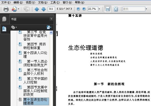 : 第一讲 生命科学中新的分支学科 第一节 生命科学研究中的伦理觉醒 第二节 道德哲学的实践 第三节 科学研究道德 第四节 法律对伦理道德的协调作用 第二讲 人类基因组计划 第一节 宏伟的生命科学工程 第二节 基因检测 第三节 基因歧视 第四节 遗传资源保护 第五节 基因专利保护 第三讲 基因制药和基因治疗 第一节 基因制药前景诱人 第二节 基因制药的反思和管理 第三节 荆棘路上的基因治疗 第四节 基因治疗伦理 第五节 防止基因治疗和改造的滥用 第四讲 转基因农作物回归自然界 第一节 利用转基因技术改良生物遗传性状 第二节 公众对转基因家作物安全性的疑虑和争论 第三节 理性地看待转基因家作物的安全性 第四节 安全性评价和监管权力归国家 第五讲 干细胞和再生医学 第一节 干细胞研究的新发现 第二节 人类胚胎的克隆 第三节 胚胎干细胞研究的伦理 第四节 细胞移植和再造组织,器官 第六讲 辅助生育 第一节 人类生育需要帮助 第二节 试管婴儿 第三节 做试管婴儿伦理争论焦点 第四节 人工受精 第五节 精子银行 第六节 对辅助生育技术有特殊需求的人群 第七讲 健康出生 第八讲 克隆人 第九讲 安乐死 第十一讲 人体实验 第十二讲 动物实验 第十三讲 人的行为控制 第十四讲 人口伦理 第十五讲 生态伦理道德