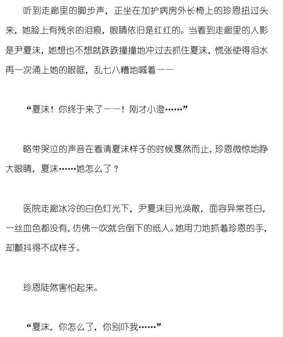 在去教堂的路上,洛熙突然出现并试图带走夏沫,被夏沫拒绝后,回到寓所自杀……夏沫在新婚的当晚知道了这一消息,而同时小澄也获悉了姐姐结婚的真相,在上手术台的前一刻坚持拒绝接受欧辰的帮助。悲痛于洛熙的自杀,愧疚于欧辰的深情,本就备受内心煎熬的夏沫,再也无法接受小澄病逝的打击,支撑不住的她,陷入了与世隔绝的自我封闭状态……所有的矛盾在瞬间爆发,夏沫还能够足够坚强、足够冷静地去面对这一系列的变故吗?欧辰的深情,洛熙的痴情,能否挽救心如死灰的夏沫呢?