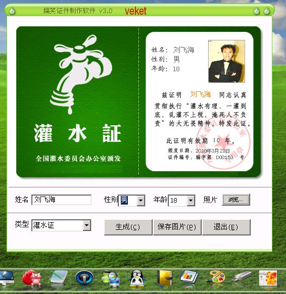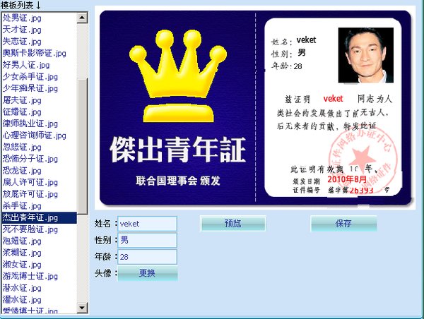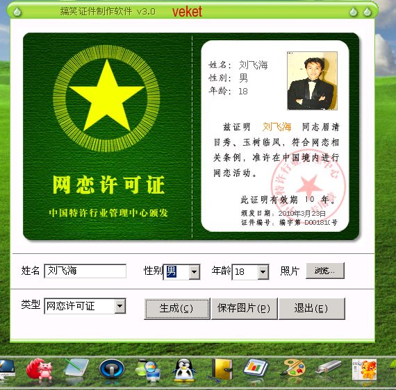 搞笑证件单机版,是一个免费的可在单机生成网络上流行的搞笑证件的软件。