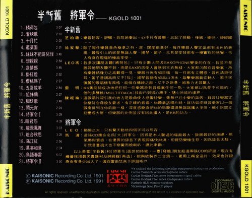 专辑中文名: 凯韵纯金专辑之一-半新旧·将军令