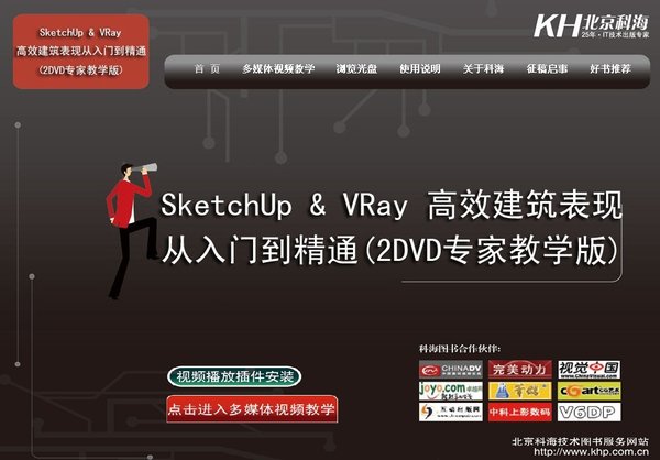 2DVD-ROM国内首创SketchUp+VRay组合应用技法盐超大型双媒体(视频+手册)教学典范之作。