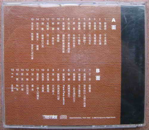 01. 千言万语 - 邓丽君 02. 滚滚红尘 - 罗大佑 & 陈淑桦 03. 风继续吹 - 张国荣 04. 似水流年 - 梅艳芳 05. 夕阳醉了 - 张学友 06. 千千阙歌 - 陈慧娴 07. 外面的世界 - 齐秦 08. 明月千里寄相思 - 徐小凤 09. 让我欢喜让我忧 - 周华健 10. 橄榄树 - 齐豫 11. 一无所有 - 崔健 12. 同一首歌 - 毛阿敏 13. 弯弯的月亮 - 刘欢 14. 选择 - 林子祥 & 叶倩文 15. 当爱已成往事 - 李宗盛 & 林忆莲
