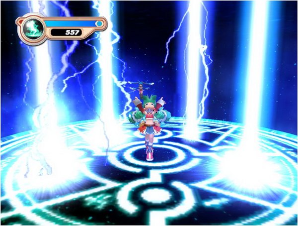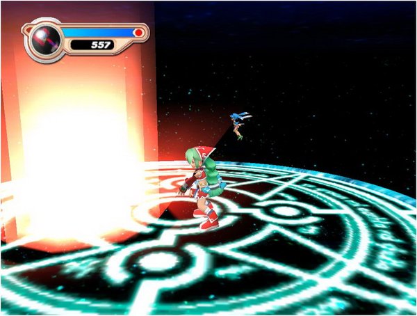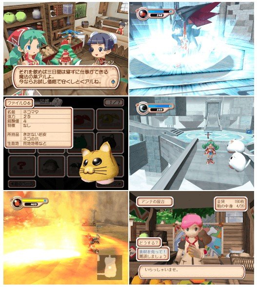 虽然看不懂日文,大致也可以看出游戏讲述的不过是主角去寻找四种元素的魔石来对付大魔王这样简单老套的故事。玩法也很简单,就是到城镇四周的迷宫去打怪物,收集道具,升级。战斗也很简单,主角除了物理攻击还会火、水、土、风四种魔法,没有魔法值的限制。升级后可以把获得的点数分配到体力、物理攻击力和四种魔法攻击力上面,某一类魔法的点数增加到一定程度就会学到中级魔法,再提高就会学会高级魔法,升到顶可能还会有终极的魔法。使用时,按住左键不放就会逐步蓄出更高级的魔法。魔法的种类还是不够多。虽然对付敌人要考虑属性的相生相克,不过总的来说战斗还是太简单了。