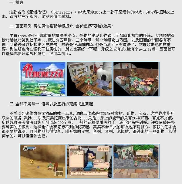 虽然XBOX在日本总是出于低糜状态,微软方面对于这块市场的努力开拓确是有目共睹。其对于日本各大游戏开发商都表示了非常友好的态度,而对于中小卡发商也不断的提供技术和资金支持。由AQUAPLUS开发的RPG《Tenerezza》是一款标准日式风格的游戏,该作虽然没有太大的名气,不过在画面风格上清新可爱相当具有亲和力。虽然并没有运用卡通渲染技术,却能让人深刻的感受漂亮的童话世界,给人的整体感觉相当不错。该作将于12月19日发售,售价6800日元。