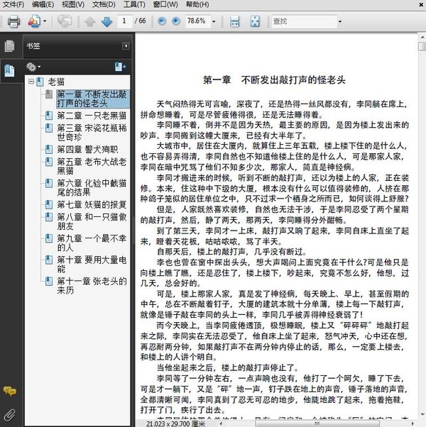 : 第一部 不断发出敲打声的怪老头 第二部 一只老黑猫 第三部 宋瓷花瓶,稀世奇珍 第四部 警犬殉职 第五部 老布大战老黑猫 第六部 化验半截猫尾的结果 第七部 妖猫的报复 第八部 和一只猫做朋友 第九部 一个最不幸的人 第十部 要用大量电能 第十一部 张老头的来历