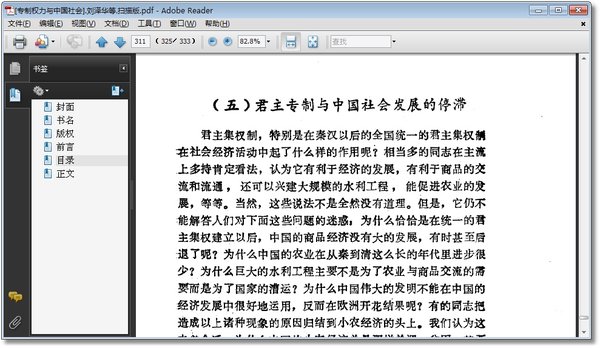 : 引子 一、君主集权国家的形成与特点 (一)君主独裁政体的形成 (二)中央集权的君主专制国家的结构特点 (三)中央集权君主专制国家的基础 二、君主集权国家对人身的支配 (一)被征服的人 (二)被控制起来的人 (三)等级中的人 三、君主集权国家对土地的支配 (一)“溥天之下,莫非王土” (二)权力支配下的个人土地占有 (三)政治权力与土地转移 四、政治权力与古代社会的阶级关系 (一)权力支配形态下古代中国社会的分层 (二)政治权力在封建地主产生与再生中的作用 (三)专制皇权与封建社会中的小农 五、权力与分配 (一)“权”与“利”在古代社会中的关系 (二)国家对社会产品的攫取 (三)贪污——古代社会特殊的再分配形式 六、政治支配形态下的工商业 (一)官府手工业 (二)官营商业 (三)民营工商业 七、政治权力与古代中国的城市 (一)军事,政治与早期城市的起源 (二)政治性的城市——400年不变的格局 (三)政治性城市在社会结构中的功能及影响 八、政治权力与文化 (一)从“焚书坑儒”到文字狱 (二)“学而优则仕”——知识分子的出路 (三)传统文化内涵的专制主义 九、君权与社会普遍危机和周期性动荡 (一)皇权与社会灾难 (二)国家机器恶性膨胀与财政危机 (三)苛政在社会经济全面崩溃中的作用 (四)周期性的社会动荡 十、关于几个问题的思考 (一)君主专制的必然性与合理性的向背关系 (二)君主专制下人的臣仆化与社会的僵化 (三)民众的贫穷愚昧与君主专制的互补 (四)没有制约机构与强谏多悲剧 (五)君主专制与中国社会发展的停滞