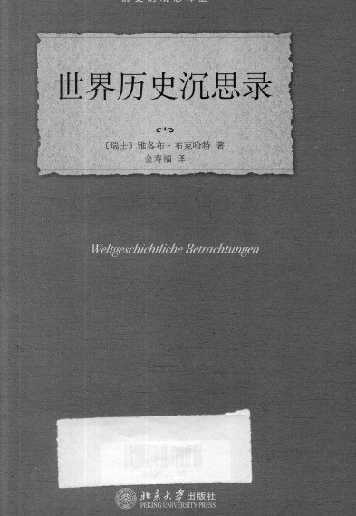 在一封写给尼采的信中,布克哈特说:“我所讲授的历史从来不是人们通常充满激情地称之为‘世界历史’的东西”。布克哈特以世界历史片断的观察者身份来回答有关世界历史本质的老问题,这个片断只是三千年历史当中的小碎块,但是正因为它是一个片断,人们可以确确实实地认知它。从众多的碎块中,他体会到了整体。他从中找到的并不是一种统一的基本思想,而是多元的潜能。1868~1873年,布克哈特先后三次讲授“历史学习导论”课程。他要让学生对三千年的历史即所谓“世界历史”的概貌有所了解,同时还要说明这段历史的内部结构以及它的流程。1905年,经后人整理,他的讲稿以《世界历史沉思录》为名出版。