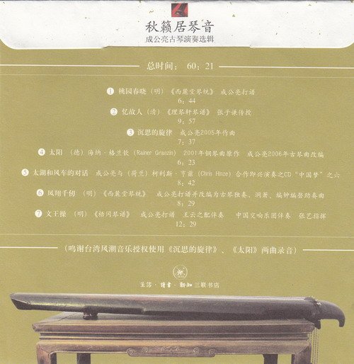 专辑中文名: 成公亮古琴演奏选辑-秋籁居琴音