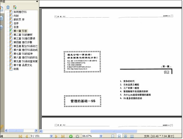前年去一家颇具规模的民营企业指导,刚一到厂,他们就提议先看看工厂。从行政大楼,车间到仓库,无一不是干净明亮,井然有序,绿化也做得很好。我很惊讶的问他们,你们的工厂为何会这么干净,他们很自豪的回答说:“推行5S活动已有一年多了,以前根本不是这样,现在变成观摩的对象,我们也乐于这样做,因为观摩的人多,越有成就感,5S就做得越起劲”。原来急着带我看工厂,就是希望我也能分享他们的一份喜悦。 记得第一次去日本参观工厂,在参观途中,解说员不经意的用手在地板上抹了一下,然后把手伸给我们看,竟然连灰尘的痕迹都没有,他指着墙,卜的几个大字,然后说:“这就是我们实施5S的成果。”老实说,那个时候对5S还没什么感觉,直到后来在我负责的企业推行了5S活动之后,才发现到工厂变宽敞了,环境舒畅了,工作伙伴们更带劲了。 脏乱与落后、不文明是同义词,在企业里与低生产力、低品质同样划等号,这是我从事企业管理工作多年来的经验。 少雄先生与我共事多年,以其务实的作风深得辅导企业的赞赏。这几年来,经过他辅导5S活动的企业甚多,成效卓越,对这些企业有很大的贡献。这本书是少雄先生这几年从事5S辅导的经验总成,能够拿出来与全国的企业界分享,甚是钦佩与感谢。也希望全国的企业,能借助5S活动的推行,塑造一个更干净,更文明的社会工作环境。 于厦门 2001.元月 记得到企业辅导或授课,常听到有些员工对5S的评价是“5S的内容我们都知道,只是没有系统化,并没有什么新的管理方法和内容”。究竟5S是什么呢?5S是“做我们本来该做的事”。事实上,问题就出在太多原本我们能够做,也该做的事,给大打折扣,甚至抱着“我干嘛那么认真”、“我已这么努力还不够吗”的错误观念,这样在细节上点点滴滴的差距,积累的结果相距甚远。假如我们在工作中对程序、制度、方法等都没能彻底地执行,如何能得其利而避其弊呢?哪有精力来做不断的管理改善?所以,如果彻底地推行5S,则已为管理工作解决了大半问题。 笔者曾在松下公司从事现场管理多年,受5S精神熏陶影响至深,其后又经历过多家不同类型企业的实务辅导工作,在得益于推行5S活动给企业带来帮助的同时,也痛切地感觉到许多国内企业在基础管理方面的薄弱与不足。而5S管理正是改善基础管理的利器,企业如能有效推行5S活动,体会5S的精髓,当可大大改善企业体质,员工的自主管理也能水到渠成。然而令人惋惜的是,许多企业对5S虽神交已久,却苦于仅能了解片鳞只爪,推行时无法系统进行,效果也就难以彰显。 因此,在辅导过程中,除了分享企业因卓有成效而带来的那份喜悦外,同时也深感肩负着一份重任一如何提供一套实务的管理工具,让更多的企业也能够分享这份喜悦。思虑之余,将累积多年的实战经验以及使用资料,系统编订成册,期许能使界内朋友有所受益。 笔者重点对5S的推行要领、推行步骤、配合活动的管理技巧以及后续的管理延伸等作探讨,突出实战性和实用性。 本书得以完成,首先要感谢林荣瑞先生的多方指导和帮助,亦感谢福友企业管理顾问有限公司同仁的鼎力相助,在此一并致以谢意! 孙少雄谨识 2001年元月