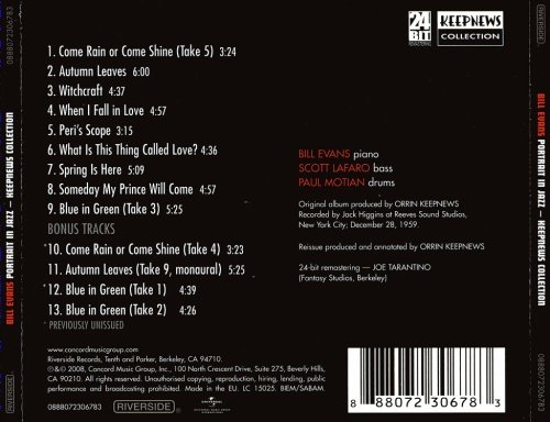 Orrin Keepnews' commentary (from his new liner notes): “This turned out to be the easiest Bill Evans record session I was ever involved in. The trio's initial working repertoire consisted entirely of material that he wanted to record but had not yet attempted; I probably would have preferred having more than two originals, having not yet fully realized that his ability to reconstruct and revitalize old and often over-familiar standards was one of his more important contributions to the jazz vocabulary.”