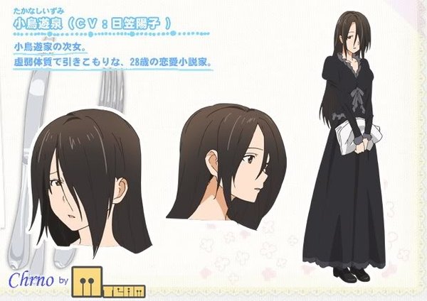 小鸟游家次女。28岁。身材高大,但因不常站立而看不出来。恋爱小说家。于第25话登场。