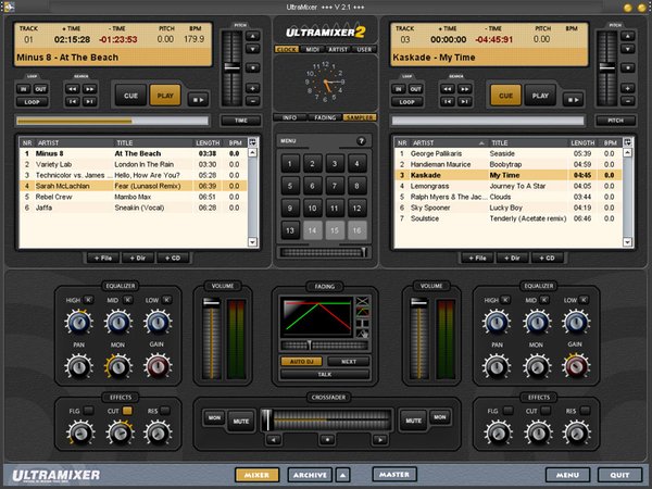 UltraMixer是一个DJ混音软件,通过它你可以对不同格式的数码音乐进行实时混音,支持诸如MP3、WMA、AAC、OGG、WAV或CD等格式。你只需要有一个声卡。DJ的唱盘被两个数码音频播放器所取代。目前有三个版本的UltraMixer:免费版、普通版和专业版。它可以与众多硬件控制器实现交互,因此你不一定必须借助于鼠标进行操作。
