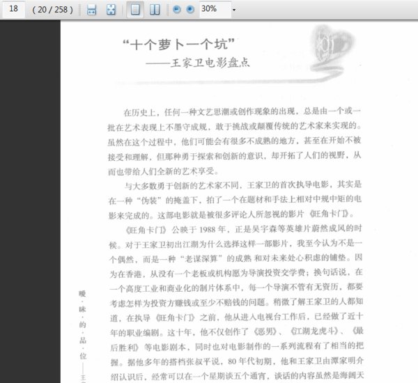 本书是关于解读“王家卫的电影世界”的专著,书中具体包括了:“方法论”——不是装大尾巴狼、“闭门羹”与“酸葡萄”、“老三样”失灵了——换一种方式看电影、暖昧也需要品位——当代小资的“死穴”、对生命的“终极追问”——《阿飞正传》的社会文化意义等内容。