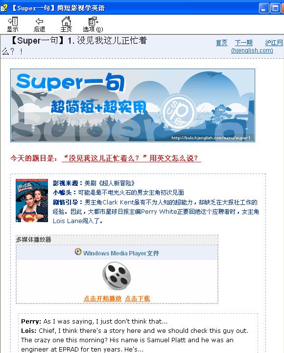中文名: 沪江英语资料:【Super一句】简短影视学英语