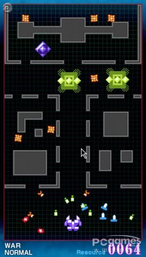 リズ公司将于4月12日,在“PlayStatio Store”上发售PS3游戏《进攻!防守!战斗!》的对应下载版本,价格为500円。   《进攻!防守!战斗!》是一款毁灭破坏都市的谜之物体,拯救地球的射击游戏。将PSP竖着进行游戏是其一大特征,移动屏幕上自军的机体,攻击敌军机体直至全灭。   屏幕上最开始只有作为己方机体的“母船”,为了不让母船被击沉,必须制造己方机体来对抗敌军。己方机体会自动攻击射程范围内的敌军,所以如何配置己方机体,成为取胜的关键。   可以使用的自军机体,包括最便宜的战车“CANNON”,耐久力最高的坦克“WALL”,可以进行修理的车辆“REPAIR”等,共11种。这些机体可以通过消耗击破敌人得到的“碎片”进行生产。   本作最基本的游戏模式,是类似冲关街机游戏一般的“アーケードモード”,从初学者到达人,五种难度供玩家选择。难度越高,登场敌机越多,击破一定数量的敌机之后便通关。   另外,游戏一开始的难易度只是初学者,之后可以逐渐解锁更加高难度的关卡。   另外,“アーケードモード”通关之后,会出现面向达人玩家的“ウォーモード”。这个模式中,战斗场景与全地图将由两阶段构成,在地图上可以移动己方机体。如果与地图上地方机体重合则进入战斗,以击破地图上最终BOSS为目标。   击破敌机,经过一定时间之后又会有新的敌军在地图上出现。普通难度为7波,之后是困难难度,9波。   另外,地图上有“基地”与“都市”,将己方机体放在上面的话,可以进行回复。因为敌机攻击而让基地全灭的话就无法进行生产了,都市全灭了的话游戏就结束了,因此这些设施的存在是非常重要的。   另外“ウォーモード”中,除了一般的己方机体以外,价格最高的最强战车“S-TANK”,攻击力最高的“HEAVY-M”,近战距离给予敌人巨大伤害的“FIREBALL”等三种机体都可以使用。