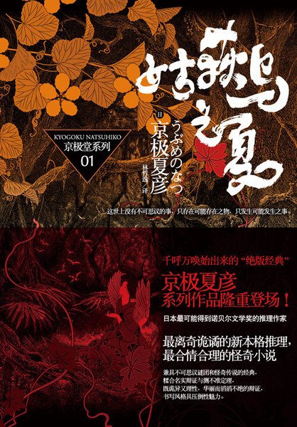 日本推理小说“京极堂”系列第一部。   以阴阳师中禅寺秋彦为主角的“京极堂”系列,开创结合推理和妖怪传说的独特书写新纪元。丰沛的妖怪知识、推理解谜的乐趣、鲜明的人物设定,是“京极堂”系列风靡全日本多年的原因。   与古代阴阳师不同的是,斩奸除魔的京极堂,除的是栖息在现代社会中人心幽暗处的妖魔。在系列作品中,身兼解谜侦探和除魅阴阳师身份的京极堂,将揭开七种妖怪的真面目。   妇产科医院久远寺家族的女儿怀胎20个月始终无法生产,更诡异的是,她的丈夫在一年半前居然在宛如密室的房间里,如烟一般地消失得无影无踪了……   夏日的午后,作家关口巽行经倾斜的坡道,来到坡道尽头一家叫做“京极堂”的旧书店,造访他大学时期的朋友中禅寺秋彦——他的朋友都以店名“京极堂”来称呼他。关口为京极堂带来这么一个奇怪的故事,期望得到解答,两人却赫然发现在密室中消失的男人是他们的大学同学,京极堂和关口是否曾经在这无法生产的女人和消失的男人事件里,扮演了什么样关键的角色?   传说中的姑获鸟这种妖怪的形象和传说,不时困惑侵扰着关口巽,白天是旧书店老板的京极堂,有需要时会以阴阳师装束出现除祆。尽管时序已进入到现代,妖魔仍在作祟。在这个号称理性时代却百鬼夜行的时空里,经常将“这个世界上没有什么不可思议的事情”挂在嘴上的京极堂,又该以何种方式解明这一桩不可思议的事件?   姑获鸟:原为中国传统怪物,又名“夜行游女”、“天帝少女”或是“鬼鸟”,形象殊异,《齐东野语》中形容为“身圆如箕,十脰(脰:脖子)环簇,其头有九,其一独无,而鲜血点滴,如世所传每脰各生两翅,当飞时,十八翼霍霍竟进,不相为用,至有争拗折伤者”,《本草纲目》则说它是“鬼神类也。衣毛为飞鸟,脱毛为女人。云是产妇死后化作,故胸前有两乳,喜取人子养为己子。凡有小儿家,不可夜露衣物。此鸟夜飞,以血点之为志。儿辄病惊痫及疳疾,谓之无辜疳也。荆州多有之。亦谓之鬼鸟。……此鸟纯雌无雄,七八月夜飞,害人尤毒也。”