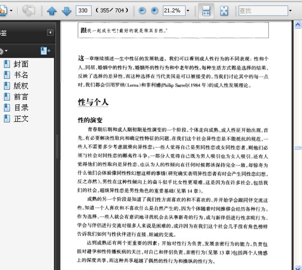 : 第1章 性的视野 第2章 性理论概览 第3章 性学研究 第4章 性生理解剖 第5章 性激素与性分化 第6章 月经期和绝经期 第7章 受孕、怀孕以及分娩 第8章 避孕和流产 第9章 性生理反应 第10章 性唤醒的艺术和沟通 第11章 性和生命周期:童年期和青春期 第12章 性和生命周期:成人期 第13章 吸引力、亲密行为和爱情 第14章 性别角色,女性性角色,男性性角色 第15章 性取向:同性恋,异性恋,双性恋? 第16章 性行为变异 第17章 性强迫 第18章 性交易 第19章 性障碍和性治疗 第20章 性传播疾病 第21章 伦理、宗教与性 第22章 性和法律 第23章 性教育