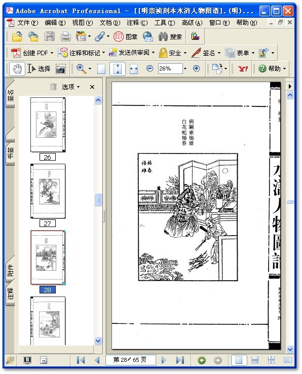 《水浒传》自问世以来,即深受人民大众喜受,各种各样有关《水浒》的绘画作品层出不穷,尤以传为明代杜堇所绘水浒人物图精彩纷呈,影响深远。作品以洗炼传神的线条,生动地再现了原书人物风貌、故事情节,有较高的艺术欣赏和收藏价值。