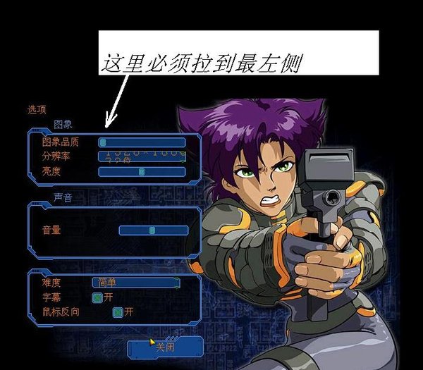 4、主菜单 — 选项 — 图像品质,拉到最左侧,否则玩不了