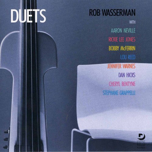 88年的专辑「Duets」是Rob Wasserman与众家歌手、乐手第一次的美感听觉接触。拥有浑厚磁性挑情音色Aaron Neville演唱57年名曲"Stardust"尽展纯情复古韵味,唱的是丝丝入古、醉人心坎;一出道即勇夺葛莱美奖最佳新进艺人的Rickie Lee Jones带点爵士风情演唱的"The Moon Is Made Of Gold"流露着稚情纯真的音质,完全解除听觉的武装;88年以冠军曲"Don’t Worry Be Happy"风靡欧美的纽约口技专家Bobby McFerrin在"Brothers"中纯以口技与贝斯快乐有致的轻松共指一番;人文民谣谣滚大将Lou Reed把吉他和贝斯完全的在一起将"One For My Baby(And One More For The Road)"Jam出老摇滚的味道;曾灌唱加拿大人文歌手Leonard Cohen作品成专辑「Famous Blue Raincoat」麻醉全世界乐迷的女声Jennifer Warnes再度选录Cohen的作品"Ballad Of The Runaway Horse",体现出清净的温暖嗓音与干净的贝斯乐声之间的心情对话;而Rob与小提琴巨匠Stephane Grappelli更把如雷贯耳的畅销歌"Over The Rsintow"好好的给他欢欣、华丽的Fusion一下,轻盈之中仍不失典雅风韵,其他如Dan Hicks、Cheryl Bentyne的精湛唱作功力亦不在话下。