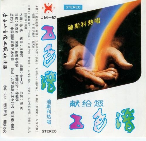 当我将这一盘尘封20余载的老卡带放入卡座时,按下三角型的方向键,数秒后,那热烈奔放的迪斯科节拍倏地从HIVI书架音箱里爆出来:“荷,哈,荷 ,哈...你今天有着多么美好的夜晚,哦,好朋友!朋友们来到这个美好的夜晚,哦,跳迪斯科,这如火如荼的时刻,你忘记生疏;这自由自在时刻,你无忧无顾...荷..哈..荷哈"。我独自在小书房里听着这般熟悉的旋律,一股青春的激情又被燃起,禁不住扭动肢体,跳一曲青春迪斯科。这就是上世纪80年代迪斯科岁月最为经典最为热销的一本磁带——《五色谱》,相信生长于60-70年代且有过跳迪斯科的朋友们定不会忘记它吧,是它点缀了我们如歌的青春岁月。于是,我怀着对青春怀念之情,将这一专辑予以发布,与同好们一起分享,让我们伴着五色的旋律,唱起来,跳起来,为青春喝彩!
