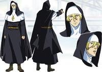 一个身材高大性格倔强的男人。修女身穿修女服(疑似有女装癖),手持冲锋枪,每逢星期日会在荒川的教堂举行弥撒。不知是否是职业的缘故,在忏悔室中能辨别出对方有没有说谎。修道服下是军服,29岁,国籍是英国。原为雇佣兵,有着大量的军火,常因战斗癖性没消除而反射性地攻击。经常预备第三次世界大战的教会地下避难所,对导弹等战斗词汇很敏感,会迅速作出反应。原为姿容端正的美青年,但右脸有较大的伤痕。出乎意料地擅长制作曲奇和蛋糕等家庭甜品。暗恋着玛利亚,但玛利亚却经常使用毒舌、暴言等各种攻击手段摧残修女的身心。由于在佣兵时代接受过特殊训练,即使面对严刑拷打仍能面不改色地应对,可是到达极限时脸上的伤疤裂开喷血。 玛利亚(マリア)