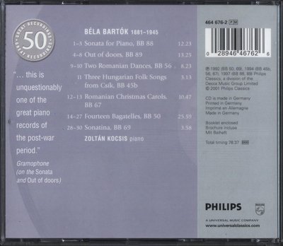 匈牙利钢琴家科奇什1952年出生于布达佩斯,是匈牙利最有才华的钢琴家之一。科奇什的触键变化多端,专门研究巴托克的触键技巧,比老一代的钢琴家更注重层次展示。他曾多次在Philips录制过巴托克钢琴作品,演录俱佳,是巴托克钢琴版本的最佳选择。喜欢巴托克钢琴作品的朋友也可以下载由乐友lvmaoqiu发布的Philips出版的科奇什8CD钢琴作品集全套,地址如下: