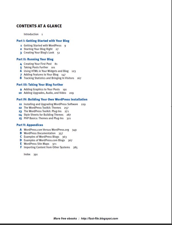 Includes coverage on blog creation, widgets, plug-ins, themes, SEO, the WordPress.com platform, and WordPress.org software.Google自动翻译: