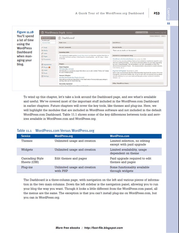 包括有关博客的创建,小工具,插件,主题,搜索引擎优化,在WordPress.com平台和软件覆盖WordPress.org