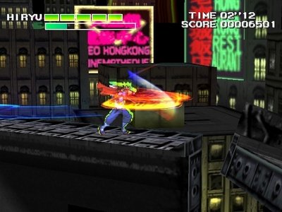 出击飞龙系列继CPS1后推出的第二部作品,游戏中更多的体现了更完整的剧情,游戏画面也因为采用3D画面而大幅强化,难度适当降低,当在某处死名后可以原地复活继续,不必再像一代那样再从某处重新开始.在游戏中得到剑可以提升主角的攻击力,在前面有墙壁时按前+B可以让主角攀爬建筑物上行,按下+B可以蹲下滑行一段距离以避开敌人正面的攻击.在按B键跳跃的过程中再按一次B键可以使出2段跳的技能,以便跳上一些比较高的跳台.当面对一些比较宽的悬崖时可以按前一下再按住前使出加速助跑,再按跳的话可以比正常的跳跃跳出更远的距离.按下上A可以使出对空斩必杀技;当游戏中你得到B字的物品就可以按C键使用一次剑乱舞攻击,攻击范围非常广.当玩家完成前面4关任务后(直接打穿第4关也可以)就会出现终极任务,到敌人的大本营第三月之都去暗杀第一代的最终BOSS.使用飞龙通关后可以使用敌方人物飞燕,普通攻击直接使用风车攻击..(可以无剑乱舞,但是空中下上A可用~),并且用飞燕通关后可以使飞龙的剑乱舞无限使用(只不过需要先在option调下);继承1代存档的话还可以出现00关,BOSS飞燕~;本作非常经典,游戏上手快,画面和游戏任务以及过关画面也比一代要丰富得多,强烈推荐