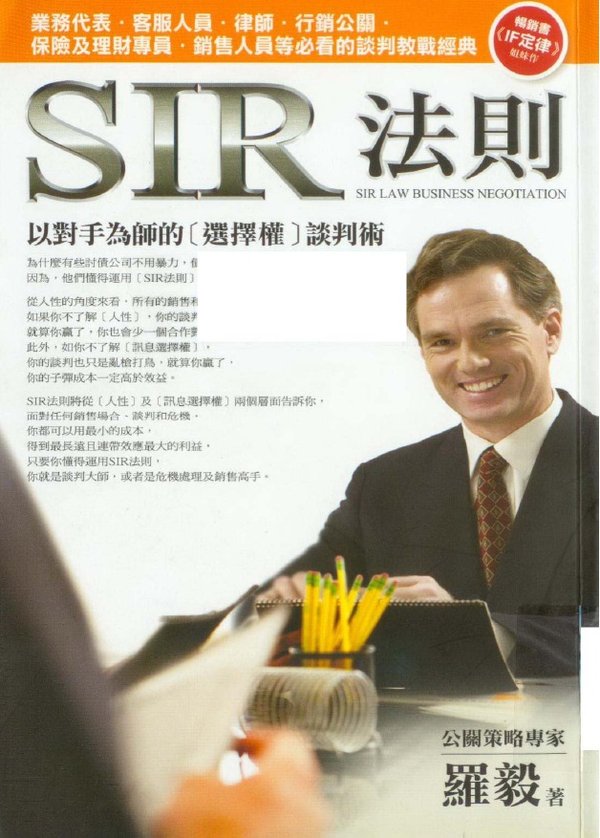 为什么有些讨债公司不用暴力, 债务人也会心甘情愿地还债? 因为,他们懂得运用[SIR法则]。 从人性的角度来看, 所有的销售和公关,都只是谈判的延伸。 如果你不了解[人性], 你的谈判只是野蛮的攻击。 就算你嬴了, 你也会少一个合作对象; 此外,如你不了解[讯息选择权], 你的谈判也只是乱枪打鸟, 就算你嬴了, 你的子弹成本一定高於效益。 SIR法则将从[人性]及[讯息选择权] 两个层面告诉你, 面对任何销售场合、谈判和危机, 你都可以用最小的成本, 得到最长远且连带效应最大的利益, 只要你懂得运用SIR法则, 你就是谈判大师,或者是危机处理及销售高手。 谈判时,你要如何选择讯息,让对方多花一倍的钱,向你买同样的商品还心怀感激? 谈判时,你要如何在对方愤怒控诉的当下,选择他透露的讯息转化他的心态,让他主动为你卖命还帮著数钞票? 我们每天都在使用谈判的技巧,只是大家都迷信,只有那些学术界或国际大师提出的理论才是真正的谈判法则。 其实大家都忽略了,真正能帮助公关或业务人员,解决谈判上的困境及衝突的,是以「人性需求」为出发点的实战法则,而不是一板一眼的教战守册。在这个现实社会中,每个人都有自己内心的需求,真正的谈判,不只是在局势上得利,更要让对方认为需求已达满足。 SIR法则可以让你绕过眾所周知的赛局理论(GAME THEORY),在各种谈判赛局中获得胜利。它一直都存在,而且各行各界都在使用,只是没人为它做出统合的整理。作者经过二十多年的公关实务经验,终於发现它的存在,并做出简单而系统化的说明。 到底什么是SIR法则?为什么它能让谈判成功率高达百分之九十?书中将深入浅出,运用各种案例来告诉你答案,希望所有需要公关的从业人员,如业务、行销、客服、律师、直销等,看完这本书,可以立刻派上用场。