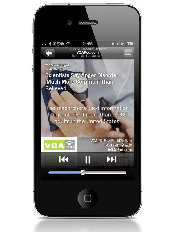 绝无仅有,史无前例,匠心独具,仅在 VeryCD 全球首发——可以让 iPod、iPhone、iPad(4.2+) 同步显示字幕并可逐句跳转的《慢速VOA(健康报道)》互动英语学习有声读物(M4B有声读物格式—— iPod、iPhone、iPad(4.2+) 直接使用,无需安装任何应用!)——注:电脑使用请下载安装QuickTime,其他手机可能需要安装第三方应用才能使用。